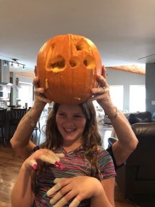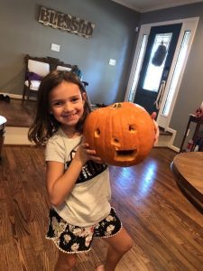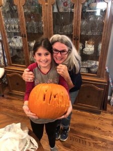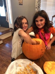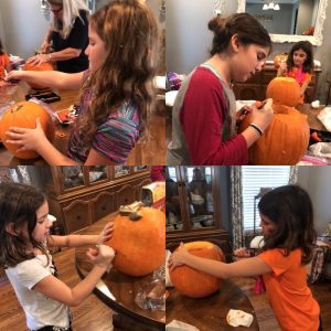 The little sisters and Mimi ended up cleaning the pumpkins out and Ivy asked to carve Lisa’s too so she carved two