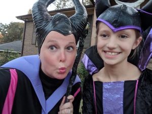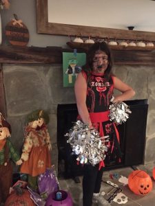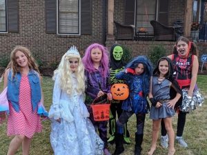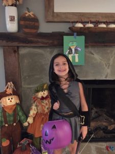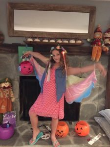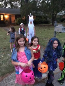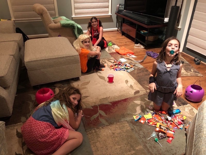 The girlies turned into a huntress, butterfly, snow queen, and zombie cheerleader before our friends arrived