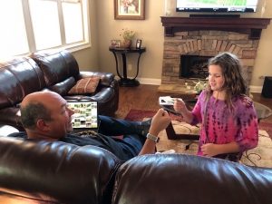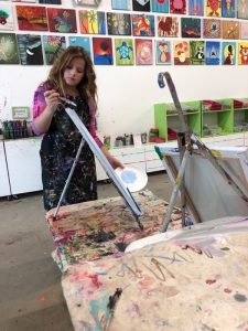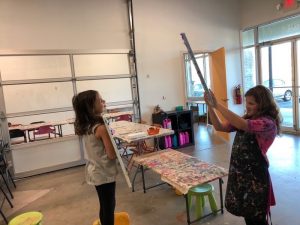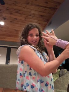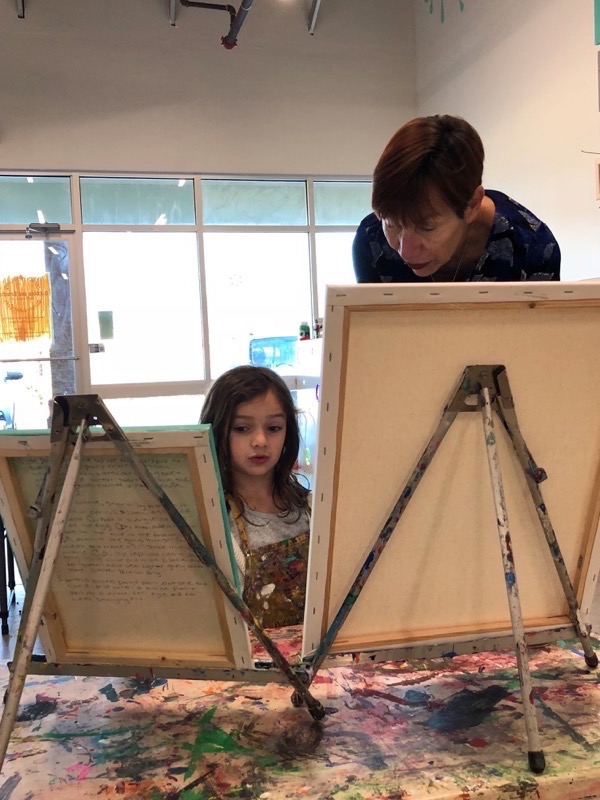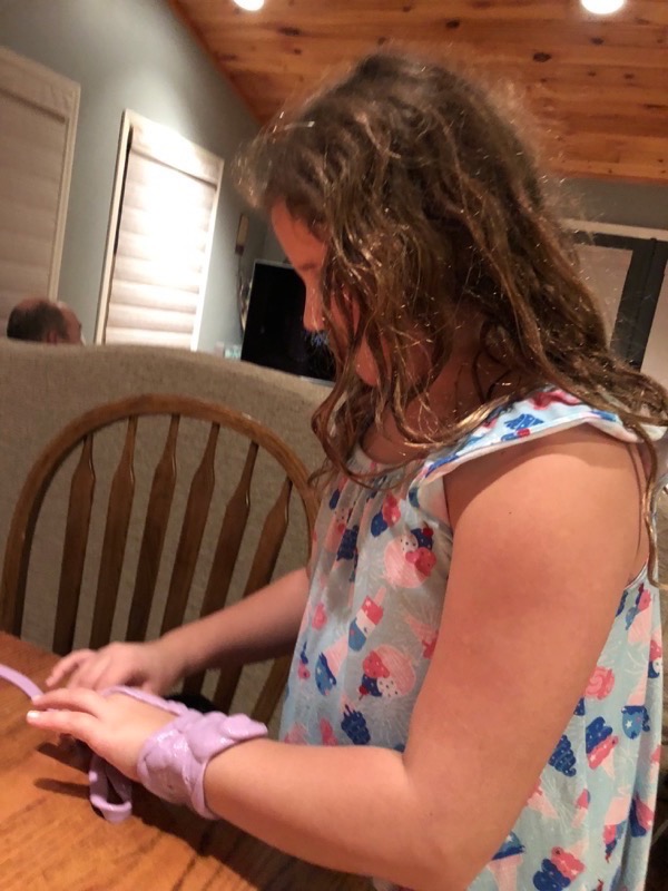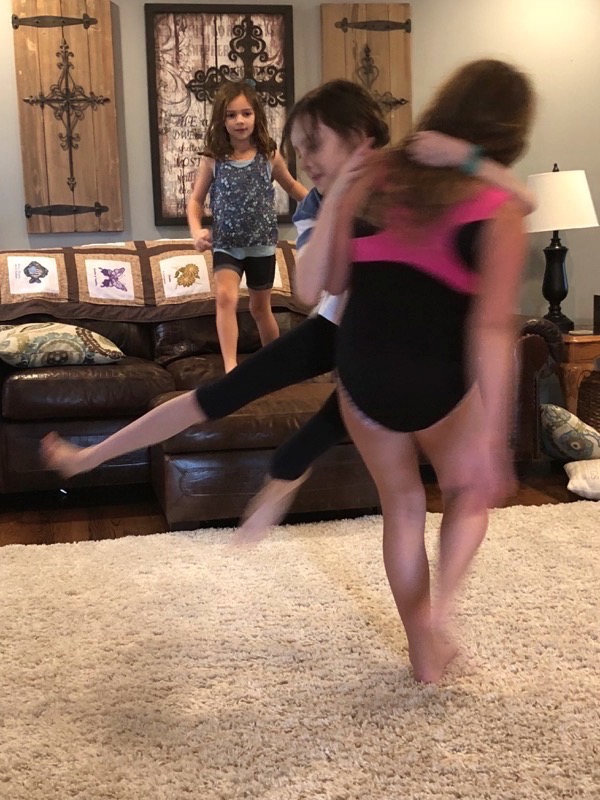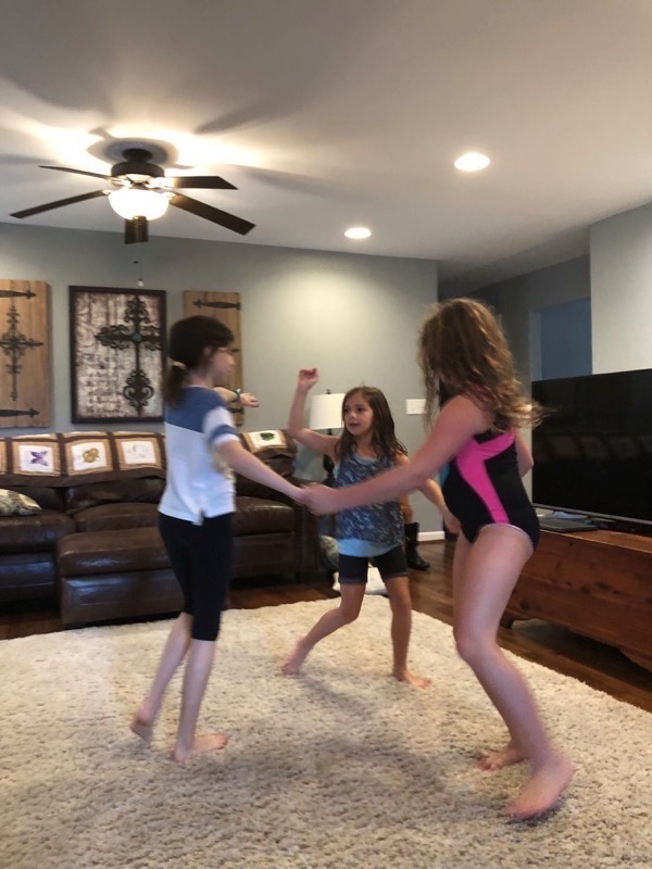 We all slept in Saturday for Grandpa’s birthday. When Deedee came upstairs Lisa had just walked into the girlies room to see what they were doing and climbed in the bed with them for morning snuggles as they finished a show. Deedee said that Grandpa wanted to cook breakfast on his birthday so we all headed downstairs to wish the birthday boy a happy birthday and enjoy a yummy breakfast together. The girlies wanted to go paint pictures at Bubbles and Brushes so Deedee and Lisa went with them there to show their artistic side. After they finished their painting Grandpa had asked them about going to the arcade for a little fun. Thankful that Leia hit the jackpot on one game so they had 2,598 tickets to share and ended up getting a big monkey, nerf gun to shoot Grandpa, and nerds. We visited a little bit after we got back to Grandpa and Deedee’s house then headed home on our long drive (we got stuck in a little bit of traffic). We were thankful we had grabbed lunch and had a restroom break before we hit the traffic. Once we got home no one really wanted to get back in the car so we fixed dinner at home and had a chill night.