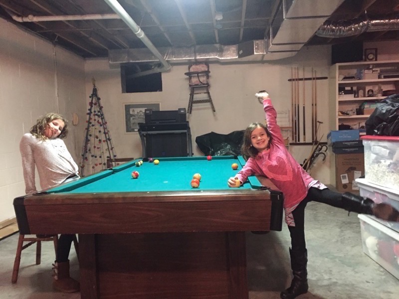 We all stayed up to ring in the New Year for the first time since the Leia had been born. Of course, Lisa also likes to have the house cleaned before the 1st so she did not fall asleep until little after 2:30am and Leia insist on waking up early no matter what time she goes to be. Hence, we were all exhausted on the 1st but enjoyed lounging around the house that morning and the girls had fun playing with our neighbor, AlexAnn. Mommy was thankful Mimi cooked the traditional, southern New Year’s Day lunch with greens and peas. We enjoyed hanging out that afternoon with Mimi and the Rhoads that afternoon. Lisa channeled her inner child, playing pool and foosball with the kids in the basement while the other adults watched football and chilled after late night. Lisa and Chris hung out until dinner time then headed home to get to bed early while the girlies stayed with Mimi since mommy and daddy both had to go back to work on the 2nd.