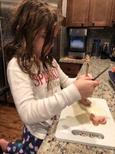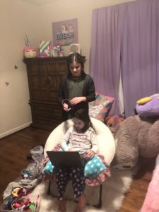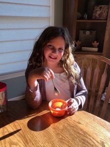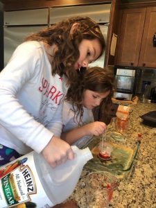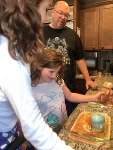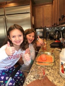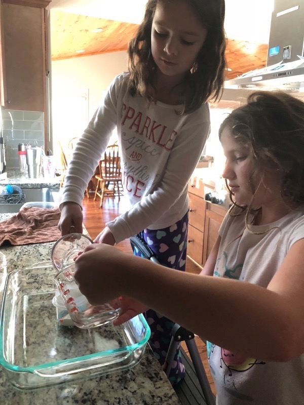 What a marvelous Monday we enjoyed! Love that we could sleep late if we wanted; everyone was up before 8 though. Mommy and Ivy got some sweet snuggle time then mommy was blessed to snuggle both girlies until they came up with the idea to try to mimic the science experiment they saw on TV. Daddy got up after just after they finished their experiment so we had to do it one more time for him before he headed downstairs to do school work. Ivy delivered his breakfast to him then the girls made jewelry, watched TV, faceTimed Alicia, and played until we headed ice skating. Once mommy, Leia, and Ivy was skated out we came back home to fix lunch. Chris took a study break and joined us. Leia looked up how to make a volcano and that was one of our afternoon activities to keep us entertained along with making homemade ice-cream to enjoy on the cool day. The girlies did their piano practice and daily reading even thought they were out of school then we relaxed and played until it was time to take Ivy to gymnastics. Leia enjoyed not being drug along since daddy was home and they got to stay home to veg in front of the TV. Mommy got to stay and watch Ivy’s whole practice. Ivy seemed to love it! She is so strong and flexible. It was fun to watch the skills she has gained since the last time mommy had gotten to watch her. We picked up dinner on the way home to enjoy a fun, family dinner before we got baths and prepared to go back to school the next morning.