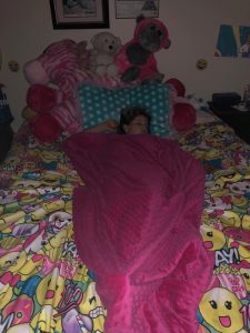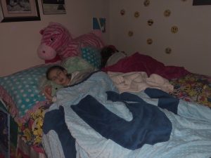 Of course when mommy got home she checked on our baby girls who were snug in their beds while daddy did homework