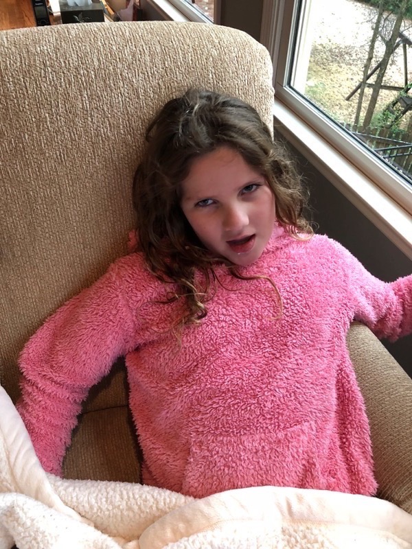 The weatherman said that we were going to get 2-3″ of snow overnight in a winter storm. Schools were cancelled, offices closed, and a state of emergency was called on counties with the warning on the 5 year anniversary of snowmageddon to ensure we did not have a repeat of abandoned cars on interstates and 10 minute commutes turning into several hours. In our house we filled the fridge with food for snow party with the neighbors, pulled out the snow clothes, and had the sleds ready next to the front door but when we woke there was nothing, not even freezing temperatures. The day turned into a bigger bust when Ivy got up saying she did not feel good and was burning up so we could not even have fun with neighbors. The doctor office had closed with the snow prediction but opened midday with the snow bust to confirm Ivy has the flu. Ivy spent the day sleeping while Leia did get to play with AlexAnn between the two houses (her little brother was home with a fever too). Kids across the state were disappointed not getting to enjoy a day playing in the snow but it was nice to get a unexpected free day from school and a nice warm winter day.