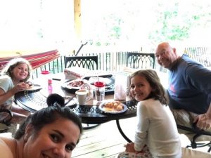 Sunday morning daddy grabbed donuts for a treat while mommy cooked eggs and bacon for breakfast since he was heading out of town for the week. Love our breakfast on the porch on a nice summer morning before the girls headed to church and daddy headed to the airport.