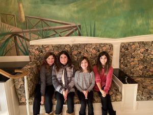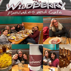 Aunt Diane helped find a nearby restaurant that we ordered in from and uncle Dennis and Mark picked it up. We found a long table and all sat around it eating the salads, lasagna, and chicken piccata over fabulous fellowship. Lisa delivered Chris’s dinner in the room as Ivy slept through it. After dinner we pulled out the cake Aunt Diane made to sing happy birthday to Mimi. Again, Lisa delivered Chris’s to the room. We lingered a little longer talking and laughing before the other 3 girls started requesting to go to bed.