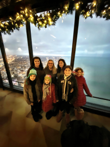 Friday morning the girls got to skip school to head out of town. We meet up at BHM airport for Mimi’s 65th birthday trip with the Rhoads. Mark overcame his fear and made it to Chicago in tact. Aunt Diane and uncle Dennis picked us up to drive us through the various towns, Greek town, china town, little Italy, etc. Of course we were all hungry so our first stop to get out of the car was to eat.