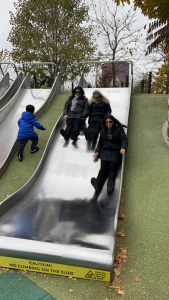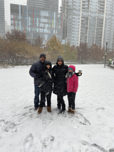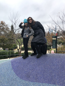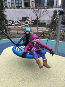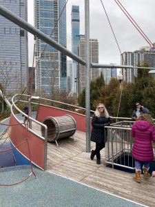 We planned to stop by Molly’s Cupcake after walking around the Pier per the girls request. They had talked to another family the night before and heard it was good. On the way we stumbled onto a fun park across from Molly’s for the girls and stopped for a little bit. The ambience was great. Girls loved the swing seats. The taste of the treats was split though. Neither Leia or Ivy liked their treats but Sara and Katie did. Either way they all got a little more energy to head to Millennium Park.