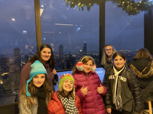 Saturday, was Mimi’s real birthday; a day to celebrate. We all were up early to start our first full day in the Windy City. To everyones surprise Mimi had left a birthday blessings card for each oh us. Lisa and the girls headed next door as soon as we woke up for birthday hugs. The Rhoads girls game a little later and we all have Mimi her cards. When the boys got up we let her open her birthday surprises before heading to breakfast.