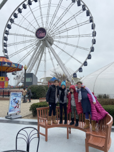We tried another restaurant named Yolk. There was not have real cream for coffee so Lisa was bummed. It was split on which breakfast joint was the best with out crew. Both were good though and everyone got energy to explore the city. Our first stop after breakfast was Navy Pier. We walked down the pier taking in the sights, explored the shops inside, got Garrett’s Popcorn, and ride the Farris wheel around three times.