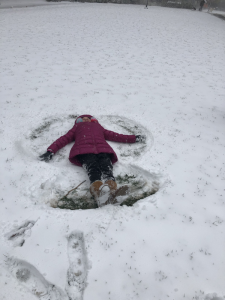 Pausing to play in the snow a few minutes before heading back to the hotel to pack up and check out
