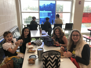 Ivy’s teacher has a mystery reader come in to read to the class periodically. Lisa had signed up in December but her teacher has to go somewhere so requested a change of date. It ended up working out for her to come on the same day as the program. The kids all are given clues to try to guess who is coming. No one guessed it was Ivy’s mom. Mimi came to hang out with us too. We loved getting to see Ivy’s class and answer questions they had just before lunch. We also joined them for lunch afterwards and got to see Katie and Leia too since all their lunches overlap before we went to the gym to save our seats.