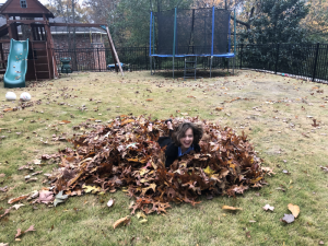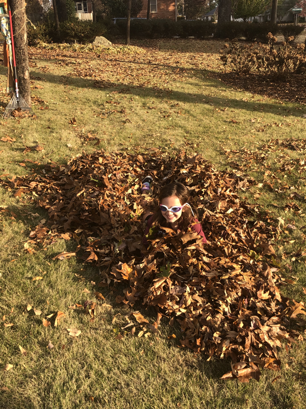 Mommy blew the driveway off and made Ivy a leaf pile to jump in at home too