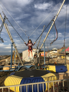 On our way to Mimi’s Ivy had saw that a pop-up fair came and really wanted to do the trampoline. On the way back home we ceased the moment for a little fun mommy-daughter time. Although as we were leaving she did said that it looked more fun from the road than it was since she only wanted to stay on the trampoline 20 SECONDS, the carousal was struggling to go, and the rides looked shaky; mommy was thankful she did not want to do any big rides there.