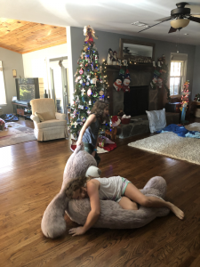 Saturday we had a much desired home day per the girls request. Daddy did a lot of school trying to finish up a class for the semester while mommy got to play with the girls; mommy had more fun ;). Daddy did get one class finished though so now he only had one more to go. Mommy focused on time with girls and tried to stay off electronics so we only took a pic when they piled on mommy since Mimi had texted asking what we were doing. The day was full of fun though! So thankful for these days with the girls and the laughs heard through the house.