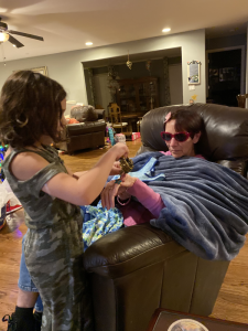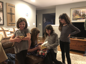 We all enjoyed just being together, fellowshipping. We catered in Leia’s favorite meal, Moe’s that night per her request. After everyone enjoyed a yummy meal we sang Happy Birthday to our birthday girl. We had brownies and ice-cream cake for treats then hung out a little more before Mimi and the Rhoad’s headed home. The girls snuggled with Grandpa a little bit and before we knew it, it was time to go to bed and end our day of celebrating Princess Leia.