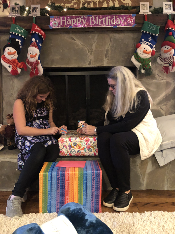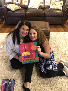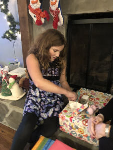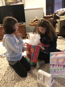 Mimi came over and Leia elected to go ahead open her gifts. Mimi has a 10th birthday tradition to give each grand daughter a real ring of their choice, 100 dollars, and couple toys of choice. Not long after opening her gifts Leia asked Mimi to go get sissy. These two sisters have such a special bond and they went into their own little world playing with Leia’s new Barbie set and bringing up old sets. As they were playing Daddy came home early to see his birthday girl. Not long after he arrived Grandpa and Deedee came too. Of course, Leia was ready for open their gift too when they arrived. Deedee made her a beautiful card with $100 and measured her for a princess dress she asked Deedee to make. We all visited as the Rhoads arrived. Leia did not disappoint and immediately opened her surprise from them too, a lego set and $10 for her 10th birthday.