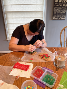 Our elf, Cupcake brought us a family cookie decorating set. It was delightful to hear the sound of joy in the air as laughter drowned out the Christmas music. We all loved getting so spend a little time the 4 of us together with no thought of work or school pre-occupying our minds and focusing on sweet time together. Blessed to spend a little time together this morning focusing on our little family.