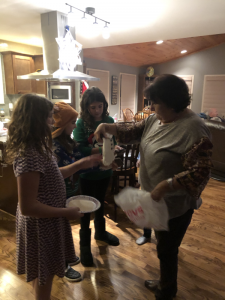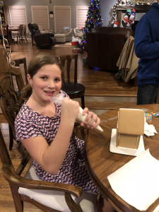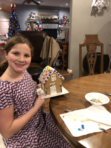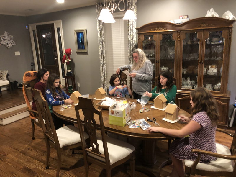 The girls racked up with surprises on the family night. Mimi Rhoads gave the girls gloves and Mimi gave them bubble gum and gift card to target then they also got to decorate gingerbread houses
