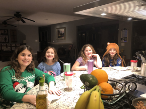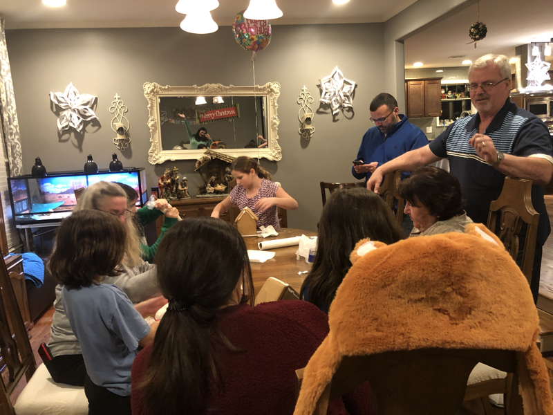 Friday evening we hosted our annual family dinner and gingerbread house decoration. This year we were thankful Charo and Ron where in town to join us. Mimi helped prep everything then Stacy and Lisa cooked it on the stove. We decided to have a crowd pleaser, tacos. The girls had fun playing downstairs while we cooked then after dinner we decorated the houses Mimi had brought. Love having family fun evenings together. These days in our life is an amazing time!