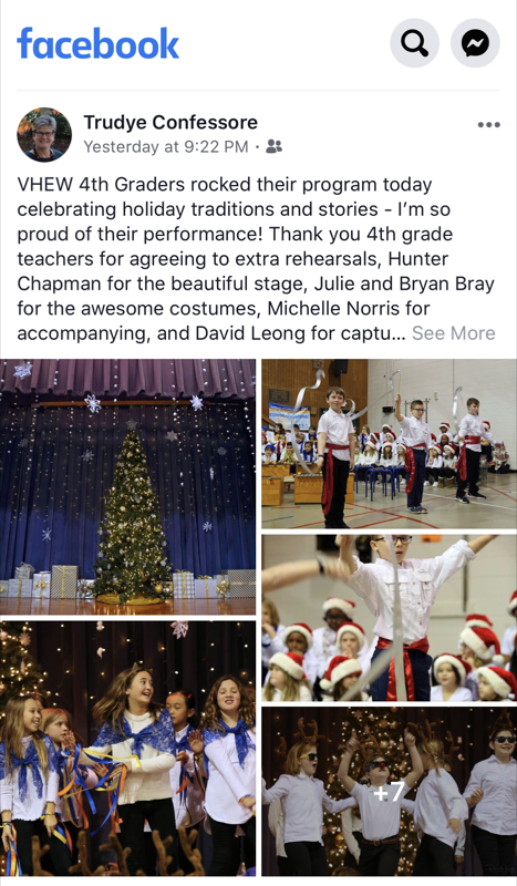 This was the first time VHEW has had a 4th grade music program since they restructured and went to a k-5 school. Leia was part of making history. There was a huge crowd in attendance and Leia had her own little cheering crowd (Daddy, Mommy, Mimi, and Ivy) there too