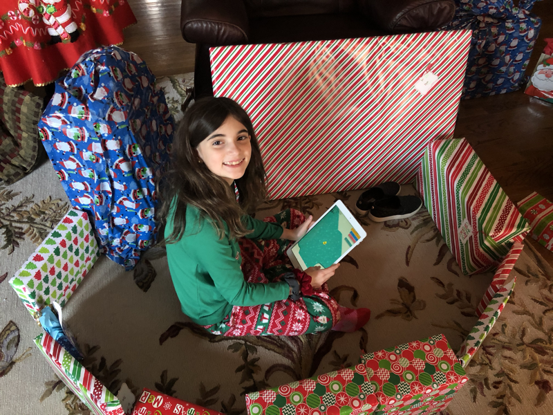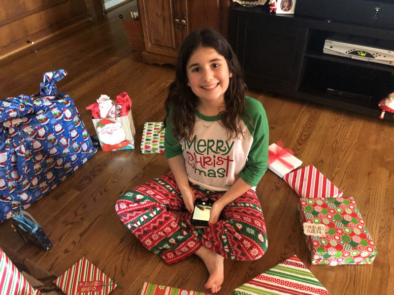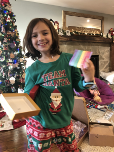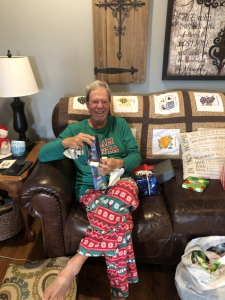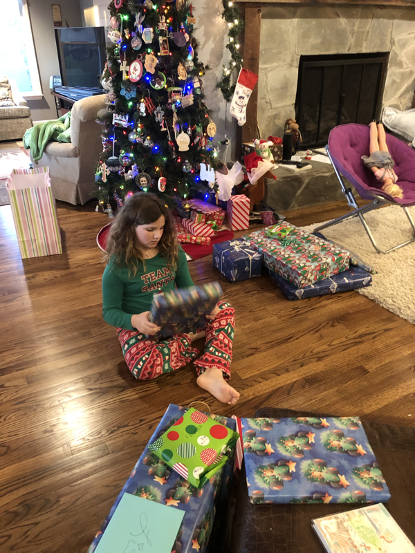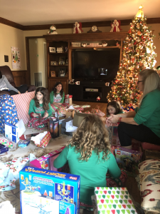 The girls said grandpa said they could wake them at 7 but Deedee got up a little before and gave them the go ahead to wake grandpa. The girls separated the gifts as Deedee made tea and grandpa got his coffee. We all enjoyed watching the girls open their gifts then the adults opened their gifts and spent a few morning soaking it all in before getting stuff together to head to Mimi’s house for brunch.