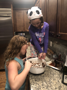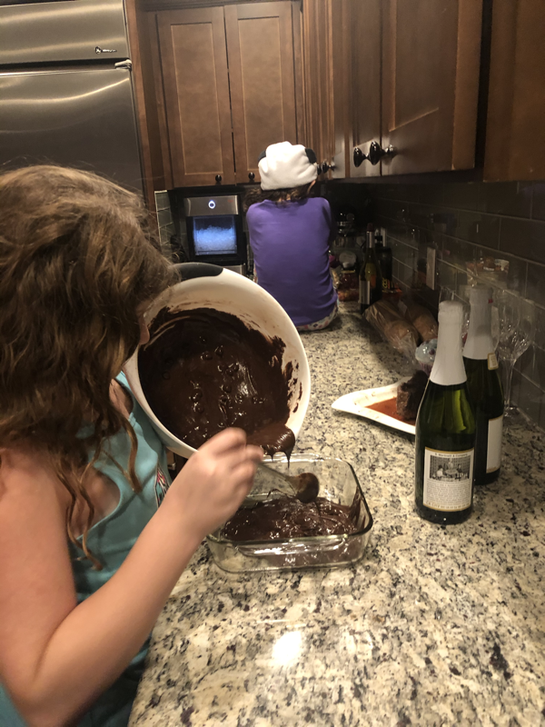 The girls made brownies to accompany our homemade ice-cream for dessert while the adults finished eating dinner