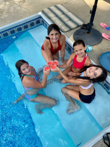 Saturday afternoon/evening at the pool with family, laughs, and good food is so good for ones soul. The girls toasted to fun evening, not long after we arrived. They played in the pool then got tired of it since we had told them the adults were all getting in too and we weren’t quite there yet since we were cooking lupper so the girlies entertained themselves in the basement and house. After we ate, that is when the fun really began. Everyone got on their swim wear and hopped in the pool for several hours. We volleyed the ball over the net, kids all showed off their diving skills, we all swam, laughed and had the best time. Night swims are the best! The first person did not get out of the pool until after 8 and the last was after 9, hence, we did not get home until after 10 but loved every minute of the sweet time together. There are not many pictures for our time at the pool since we all were in the pool at the same time but the good times were rolling and the memories made are all so sweet.