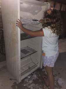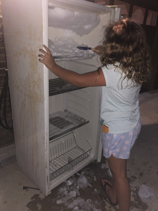 Lisa left the party early to pick Leia up from her friend’s party. We needed to do a little work at home getting ready for our new freezer by emptying the old one and moving it out. We made it fun though and let it snow on us in the clean out