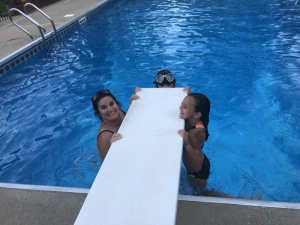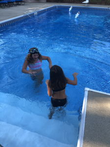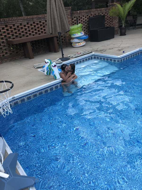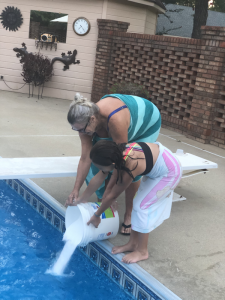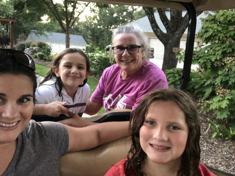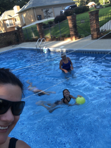 Monday was another work day and anything and everything at work was going wrong from files disappearing or pulling up blank to not being able to access work programs. The girls were perfectly happy though chilling in their PJs all day watching TV or playing games together but by the time the afternoon came they wanted something fun to do too. Even though it was a rough morning by the time the afternoon came around momma was determined to set a fun plan for the remaining days of summer so we each wrote down things we wanted to do then compared our lists and developed a plan or schedule. One thing on all the ladies list was a night swim and with 3 nights before school the only night that worked was Monday evening. We asked daddy if he was interested in swimming too but he said he did not want to so the Comfort ladies headed to Mimi’s for a girls evening swim. We also planned to pick up dinner on the way to enjoy dinner on the porch but had 15 minutes to spare so ended up buying the girls cowgirl boots while we killed time. Mimi was ready for us when we arrived and we all sat and ate together then everyone got in the pool. We played volleyball and splashed around before the little ladies were ready to go ride the golf cart until dark then got baths and visited a little before heading home for the night. Thankful for a low key, fun girls night with Mimi.
