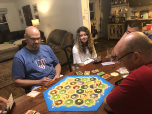 We were blessed to get to celebrate our neighbor, Wes’s birthday Sunday evening with their family. We went to his favorite restaurant, Habaneros and had them sing happy birthday to him. Then we headed back to their house for cake and ice-cream after he opened his birthday blessings. Of course we played a round or two of Catan but we did not let the birthday boy win. It was a fun celebration!