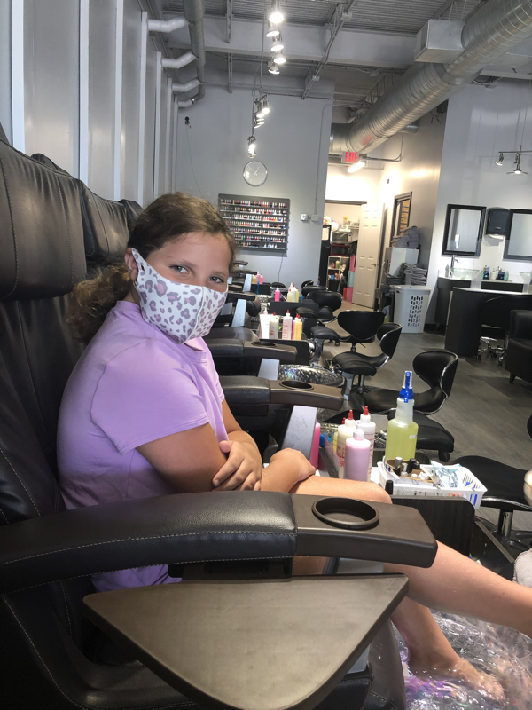 Tuesday morning we knew mommy and daddy had to work but momma only worked 4 hours so we could mark another last week of summer off our bucket list, pedicures. The little ladies made mask lanyards for school after we finished with our spa treatment and then we had a little R&R in the den watching TV until dinner time. That evening the whole family went to the barn to attend the volunteer training that is required for the fall classes. We did manage to get everyone in bed by 8:30 to start backing the bed time up a little to prepare for school starting again.