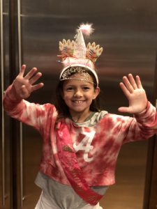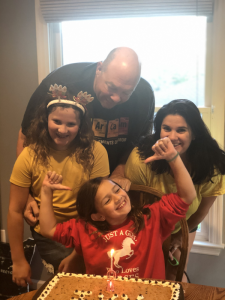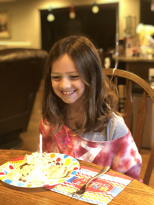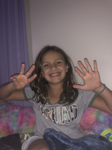 As we tucked her in we took our last selfie with our 8 year old and picture of her holding up 8; she is so excited to be turning 9