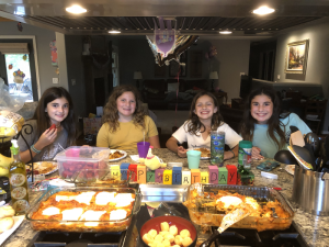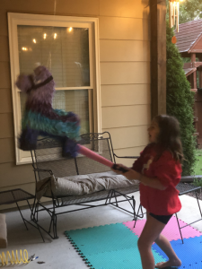 Ivy had to go to school on her birthday but mommy was up early to make sure her birthday breakfast order was prepared per her request. We got to enjoy a family breakfast and Ivy opened up gifts before the 7:15 drop off. Mimi came over that morning to help prep dinner then we checked the girls out just before lunch so they could have a special birthday lunch and fund afternoon. Grandpa and Deedee arrived at our house not long after we got back from picking up lunch too. Of course, Ivy wanted to open her gifts as soon as lunch was over. Love to see her enthusiasm opening surprises. As soon as she was done, Leia and the birthday girl was off to play. Mimi picked up Sara and Katie who joined in on the fun once they got out of school too. We all hung around the house the rest of the day simply enjoying the day together. Mark arrived when he got off as we were pulling dinner out of the oven. We all enjoyed dinner and dessert before Stacy finally made it from work just in time for the kids to do the piñata. It was getting late for a school night so Mimi and the Rhoads headed home. After baths there was just enough time for two quick games of Jenga (Ivy’s request) before the girls headed to bed and Ivy’s day of celebration came to an end.