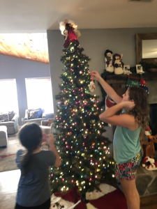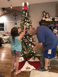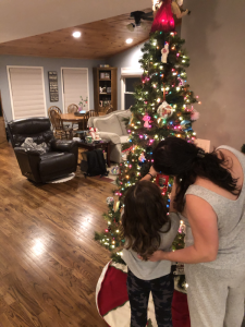 Chris had planned to be a hunting trip through today so mommy told the girls that we would deck the halls early this year and give daddy the gift of not having to help since it is not his favorite thing. As life would happen his trip was cancelled and the girls had already been told we were going to decorate for one of our favorite times of the year so to day was the day that we decorated for the most wonderful time of the year. We still did not have Chris do too much though so he still got a gift of getting out of it a little. He did help the girls put up the tree, carried up a few of the boxes, and but a few ornaments on the tree. Leia and Ivy hung in strong but then Leia filtered out and Ivy followed suit. It did feel like it was more work than normal to get all the Halloween decor down and transition to Christmas inside and Thanksgiving outside but once it was all done it was nice to sit back and enjoy the glow of the tree.