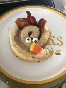 Turkey cinnamon rolls to start our Thanksgiving morning off after sweet snuggles