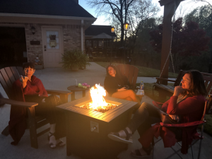 Warming by the fire pit as temperatures dropped still cherishing the time together to fellowship and talk with one another