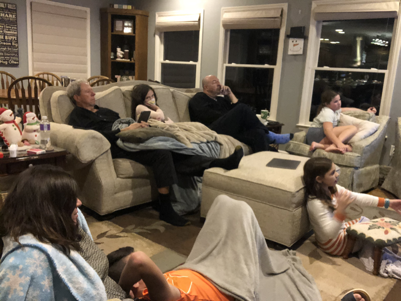 Evening Time zooming with the Batson family, playing “Beat the Parents”, playing, and watching TV … Thankful for the night together