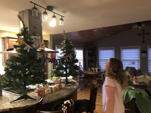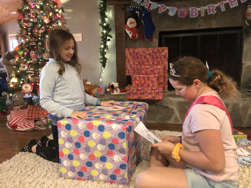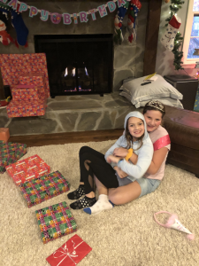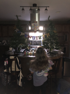 Leia woke up super excited it was her birthday! We all got a snuggle from the 11 year old in the house then decided to get moving since it is a school morning. Ivy was excited she was the the first to spot Cupcake, our elf who brought them Christmas trees for their rooms all the way from the Northpole on Leia’s birthday.
