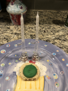 Leia did open one gift herself as Ivy was throwing the paper at daddy. Ivy excitedly volunteered to light the candle once breakfast finally got done 30 something minutes after it was put in the oven which put our morning schedule behind