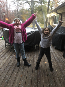It does not take much snow to get us excited. After hearing there was cold weather coming in this week Leia declared it would snow. There was hardly a dusting but there was enough for he to say told you so and the girls wanted to go outside to play in what little fell. Hoping we get a good snow this season! The zest for life and joy they have is admirable, pray they always have that kind of joy in their hearts