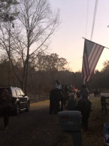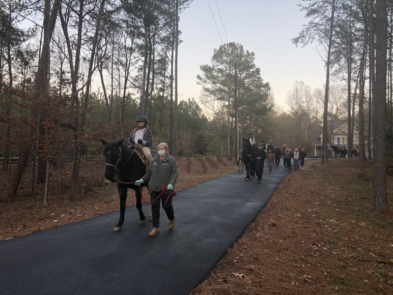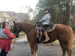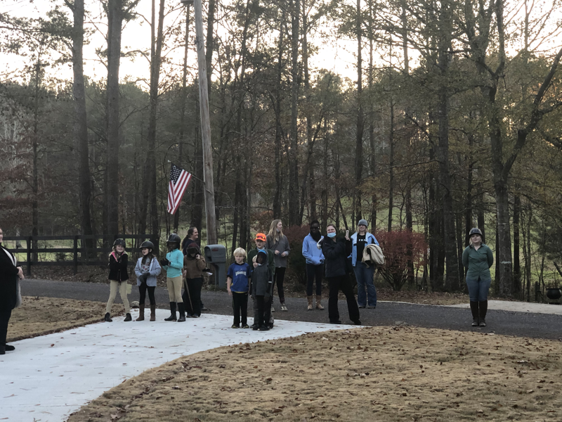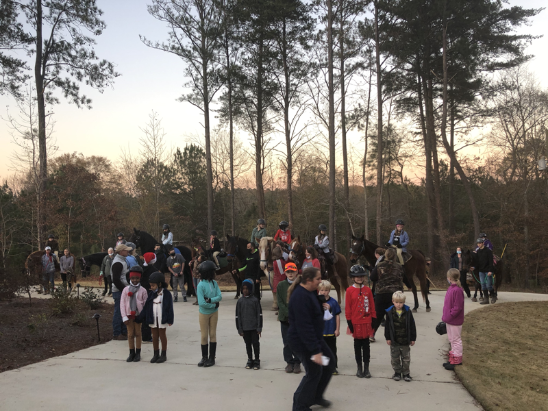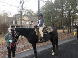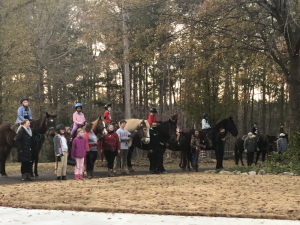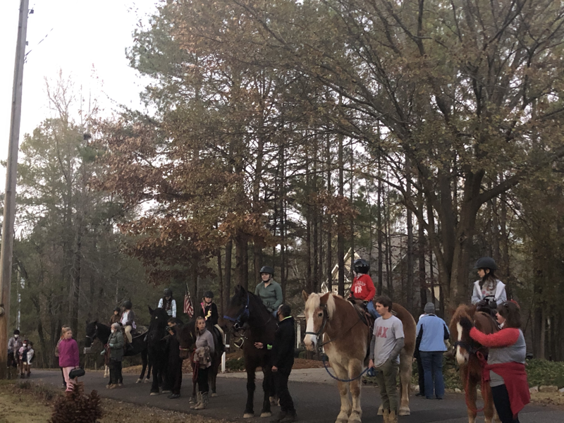 Leia and Ivy went to what we thought would be a normal group horseback lessons but ended up being carols by horseback to spread Christmas cheer to neighbors near the farm. All the Tuesday groups were combined and they practiced singing carols then mounted up to go sing. They sang 3 songs at each house, “We Wish you a Merry Christmas”, “Jingle Bells” , and “Rudolph the Red Nose Reindeer”. The lesson was 2 hours instead of 1 and it got chilly after the sun set but it was a fun Christmas activity that brought joy to several households. Blessed to get to be part of a fun horse program that focuses not only on riding but serving and character building too.