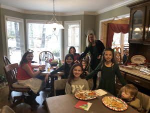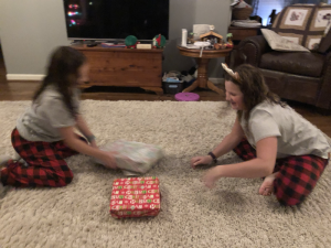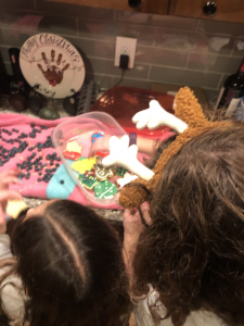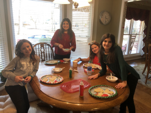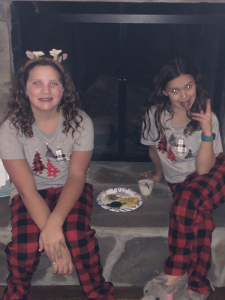 Our four little ladies decorated their sugar cookies as their tradition has been for years then the Rhoads headed home. We hung out with Mimi a little longer then we headed home ourselves to put away our goodies at home. The girls exchanged the present they bought each other and played a little bit before aunt Kelly Face-timed us for a little bit from their Christmas ski trip to SLC. We all enjoyed talking then the girlies picked out their cookies for Santa to put them on the fireplace before they headed to Ivy’s room for their movie and game night following Sara and Katie’s tradition they started doing last year too. Mommy did make them turn their TV down when we headed to bed in hopes we all would start dreaming of sweet, sugar plums soon.