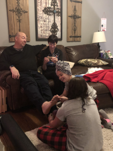 Aunt Kelly FaceTimed us. Our girls were excited to show her their daddy’s toes