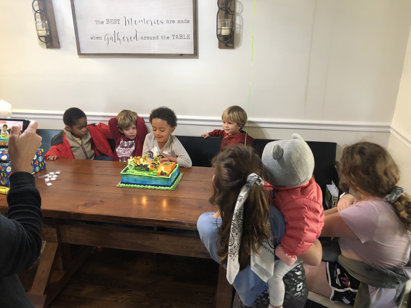 Monday (MLK Day) was a home day for three quarters of the house. Mommy picked up breakfast and then ran a couple errands but we enjoyed most of the day outside jumping on the air track and playing in the backyard. Stacy and Sara came to visit a little bit to enjoy fresh air too before Mark and Katie got home. Chris was feeling better and ventured outside that afternoon. We ended up having a nice steak family dinner followed by a stroll around the neighborhood before getting ready for the school week ahead.