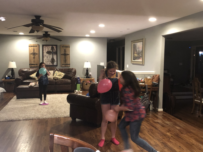 Sunday, Chris was still feeling a little run down so Mommy, Leia, and Ivy met up with Mimi, Stacy and Sara to run to the store then went to the Rhoads’ house to visit a little bit. The girls played on the air track, we played games, and enjoyed lupper. It was a sweet time of fellowship with a few of our favorite ladies.