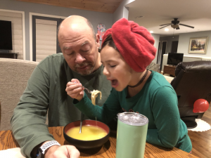 We had a low key dinner where Ivy discovered she liked daddy’s soup. It is funny because both girls have liked food off his plate more than their plate from they time they started eating. It is amusing and has become a frequently laugh.