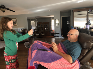 Sunday was online church and football day with the playoffs for the Super-Bowl. Ivy entertained herself crafting though and wanted a pic of Chris wearing the hat she made. Love her joyful spirit! Pray she never loses it.