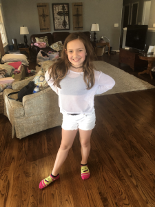 Saturday morning was the first Saturday that we did not have something to do early so we all hung around in PJs and savored the time. Joy and Lisa took the girls to horseback riding mid morning. They were super excited to show Joy what they could do but boy was it hot. After that adventure we headed home to cool down but still got a couple short walks in before Mimi came over to join us for dinner and visit with aunt Joy too.
