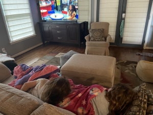 Monday was sweet snuggles on the coach while mom and dad worked