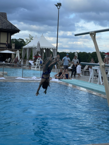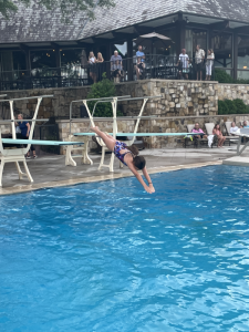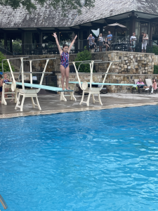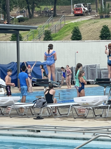 Thursday, the girls did swim and dive again that morning. We all straightened up the house then they got to play/chill while mom and dad worked some more; wish we all got the summer off of work. But that afternoon we all went to support Ivy at her first dive competition. None of us were sure what to expect when we went but went with open minds. Very thankful, momma had grabbed a few snacks even though when she grabbed them she thought she was just weighing her purse down and they would not be ate. Three hours later, they were ate and Ivy was finally doing her dives. As soon as she finished diving and got her reward we headed for a very late dinner. But it was fun watching her do something she enjoyed and Leia decided she might try it too.